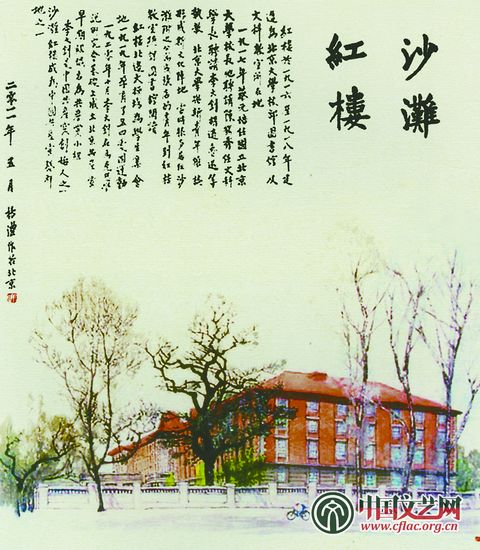 进入2l世纪,杨澧转向中国画创作,他称其为“彩墨画”,画中水彩画成分较多,似乎也可叫做毛笔淡彩画。那些作品都是有感而发,如2011年画的《沙滩红楼》和《北京大学图书馆》,红楼那有着复杂透视变化的窗户,北大图书馆那一叠叠的报纸,都被画得一丝不苟,有着工笔画的精确,是现场写生,而非照着照片画的。上世纪80年代,杨澧在文联任职时,他们的办公地点就在红楼后边那一排简易楼里,每天上下班,都从红楼前边经过;早先李桦住在银闸胡同,斜对着红楼,学生们来往也从红楼边经过,是岁月的感受和对前人的缅怀之情凝结为这些作品。说来杨澧对北大红楼还有一份难忘的缘分,那里曾是他父亲杨兆祯读书的地方。