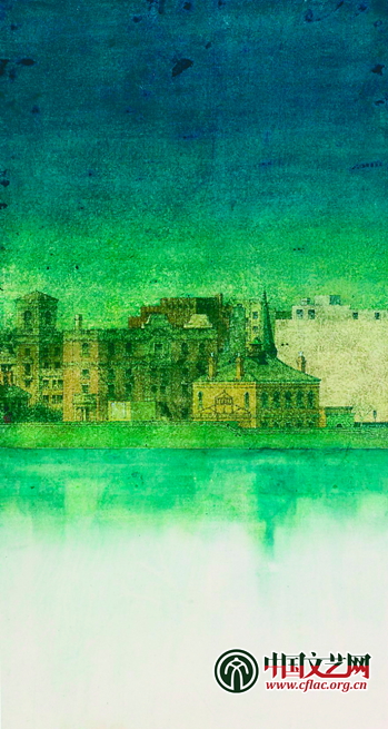 正在上海朱屺瞻艺术馆举行的“墨色倾城:2013上海师范大学都市水墨邀请展”上,展示了洪健作品《春水向东 苏河NO.2》(纸本设色)
