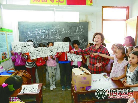 68岁志愿者杨秀玲在为农民工子女上美术课