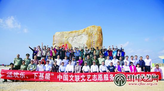 kaiyun电子 文艺志愿服务团和三沙市党政军领导在三沙市成立纪念碑前合影