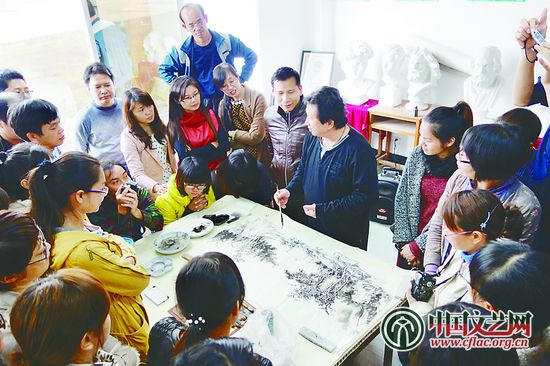 与乡村艺术教师结对帮扶的艺术家代表、著名音乐家付林与音乐教师交流