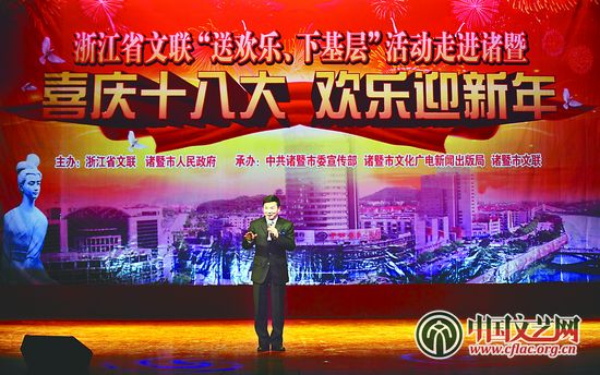 中国曲协副主席、浙江省曲协主席、莲花落表演艺术家翁仁康在诸暨市为观众倾情表演