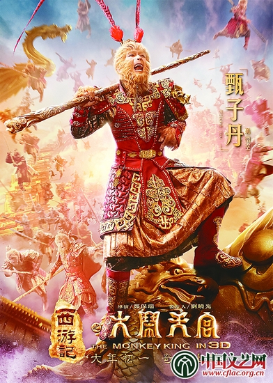 以《西游记》小说前八回为蓝本,由香港著名导演郑保瑞执导,甄子丹、周润发、郭富城、何润东、陈乔恩、张梓琳、梁咏琪、陈慧琳等众星加盟的3D魔幻电影《西游记之大闹天宫》日前发布12款角色海报,分成了东方超级英雄“孙悟空”、三界至尊“玉皇大帝”、魔族枭雄“牛魔王”三大阵营,除了三位核心人物之外同时还发布了二郎神、菩提祖师、九尾狐、铁扇公主、女娲、嫦娥、观音、哪吒、东海龙王等众神魔角色海报。海报中美猴王身披红袍战甲、肩扛神兵如意金箍棒、脚踏天宫黄金巨龙柱,仰天狂笑,顽皮傲气。此次周润发饰演的玉皇大帝在造型、性格、气质上将完全不同于传统的玉帝形象。海报中的玉皇大帝不再是黄袍加身,而是身披银色战甲,手持青龙剑,神情威严肃穆,尽显统领三界至尊的王者之气。影片将于2014年1月31日即大年初一上映,星皓电影负责人竹聿名称,2014年适逢马年,正月初一又是马年的第一个月,期望届时能在电影市场掀起“马年猴月”的魔幻风暴。