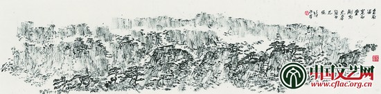 焦墨作为中国传统墨法“焦、浓、重、淡、轻”之首,主要作用是突出与强调,如果单独运用,没有水的变化,难度很大,不容易画出意境,“计白当黑”、“知白守黑”,对画家的创造力是一个巨大的考验。焦墨山水的发展其实很大程度上得益于写生,因为写生有可能突破某些陈规,带来生活的气息,也有利于体现自身的表现个性,投射出时代的风格印记。邵璞的画里也有写生的成分,但是并没有削弱他主观的部分,反而比较“意象”,比较有诗意,画面简淡恬静,笔力刚柔相济,语言凝练,看似轻描淡写,寥寥数笔就勾勒出山川万象。他淡化了写实成分,启用他个人对于山水精神的理解所提炼出的独有的符号元素,既来源于生活,又高于生活,画面轻灵抒情,意到笔随。他对于诗歌的修养造诣和诗性的情怀使他轻松地避开了焦墨画法易过于结实浓烈而不舒展的先天缺陷,非常可贵。
