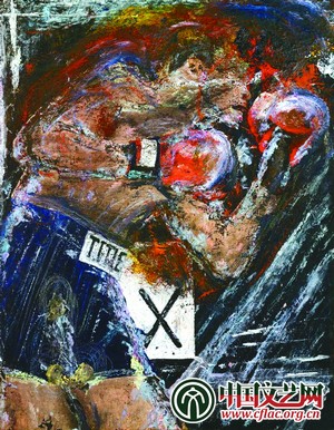 展览中的作品向我们具体展示了培根对影像尤其是摄影图片的迷恋,以及这些图片带给他怎样的灵感源泉与创作的自由。此次展览中,培根1950年在粘有毕加索的照片纸上用油彩、色粉和铅笔创作的《双重脸面的毕加索》和1955年用色粉水洗和油彩在黑色艺术纸上画的《肌肉男的大全背》等作品,就明显标示了他在上世纪50年代至70年代人物和肖像研究的思路和风格。同样,在复制品上用油彩和刮擦方式形成的《男人沿着廊道追逐少年》,以及用油彩和色粉着力涂画的《法国运动报上的拳手们》(此幅作品已由贝瑞·焦尔捐赠南京艺术学院美术馆,成为南艺美术馆的永久收藏),也明晰了培根对人物形体处理的结构方式和对形象的心理、精神的叙事逻辑。此种对画面重新解剖、再折叠、再归纳的视觉观念在他一系列的裸体人物研究和肖像系列研究中都有明确表达。他被达明·赫斯特称作“有史以来最伟大的画家之一”的原因,也许就是他在颠覆图像中孕育想象的能力,最有代表性的就是他利用委拉斯贵兹创作的《被牛肉片包围的教皇的头像》所创作的一系列变体画,以及诸多的头像研究。