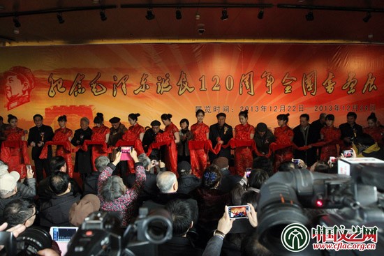 12月22日,纪念毛泽东诞辰120周年全国书画展在中华世纪坛世界艺术馆开幕。kaiyun电子 副主席杨承志,中国美术家协会秘书长徐里等出席展览开幕式。