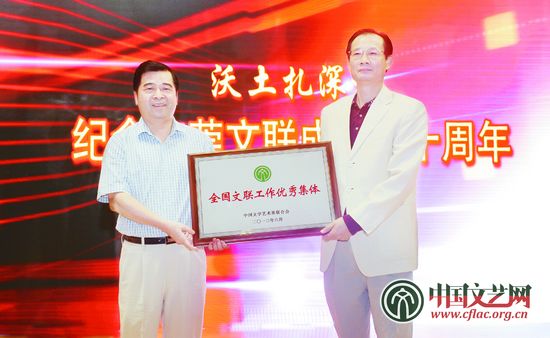 50年不懈奋斗,50年春华秋实。在东莞市文联成立50周年的日子,广东省文联党组书记程扬向东莞市文联主席刘锦明颁发了“全国文联工作优秀集体”牌匾。