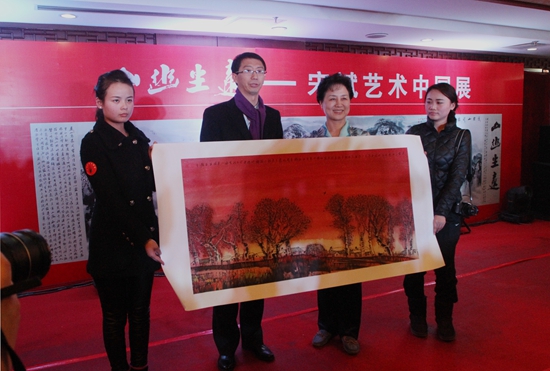 宋斌现场赠送画作 中国文艺网 高晴摄