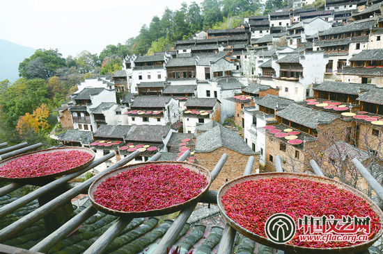 晒秋曾是乡村日常生活中的一部分,如今人去村空,晒秋成了开发商为摄影者和游客打造的风景。图为婺源篁岭的晒秋,村中已经无人居住。 张志勇 摄