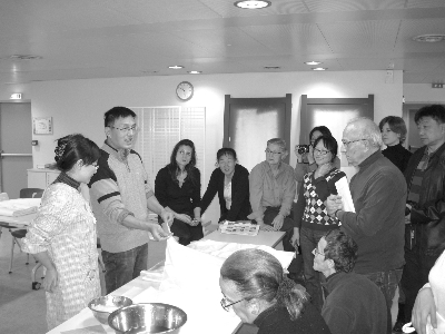 杨泽华向法国学员传授书画装裱工艺