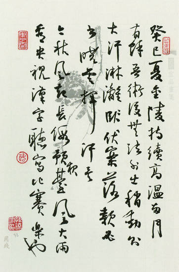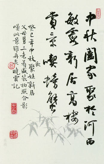 郑培亮写浊酒、香烟、商品房,读来令人会心一笑。漆钢去重庆龙咀公园、金山公园写联,别人准备的不好,遂自写“山铺秀色,送荫拂座;水映岚光,花气宜人”。孙晓云写“癸巳夏,金陵持续高温两月有余,吾术后无法外出,稍动则大汗淋漓,伏案落款,必书晓云挥汗矣”,又记“中秋阖家聚于河西敏露新居,高楼赏景,吃螃蟹”等居家琐事,读来亦清新可喜。“将白话和生活记录引入书法,进行艺术化的表述,是生活审美化和审美日常化的规律。”中国书协副主席言恭达认为,就好像星巴克推出的不只是咖啡,还有对咖啡的体验一样,书法也不应只是写字,而是几千年传承的生活方式、生存智慧与感悟。“如果书法家陶醉于古董文明、化石文明而不自觉,就缺失了对生活的碰触和时代的担当。”书法家孟鸿声说。
