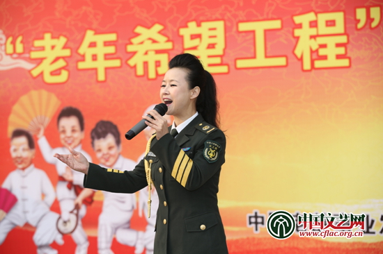 姚林辉随中国老龄事业发展基金会理事长李宝库到村民家中看望并送上她在人民大会堂举行的作品演唱会光盘
