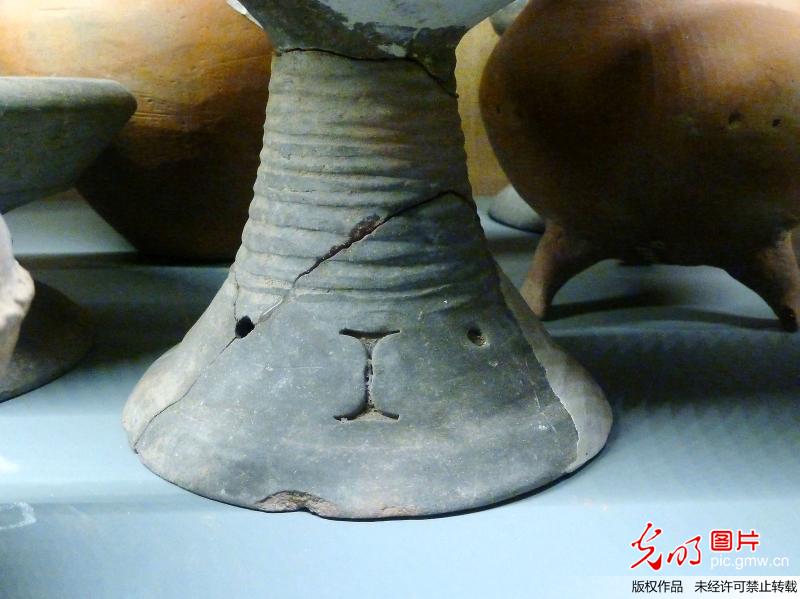 2014年1月5日,南京博物院历史馆,酷似动漫"越狱兔"的陶豆纹饰 王路宪摄