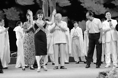 8月13日,评剧《风雪夜归人》在哈尔滨北方剧场彩排,并征求专家意见。招手者为导演陈健骊。