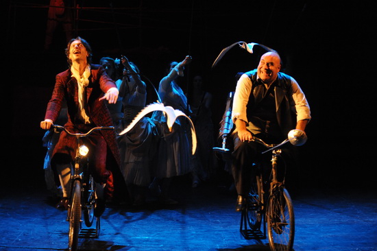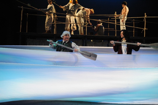 以色列盖谢尔剧院的演职人员大多以俄罗斯移民为主。多年来,该剧院成为了以色列与俄罗斯文化的桥梁,无论是演出风格还是舞美设计都是在俄罗斯戏剧艺术的基础上汲取了以色列文化的精髓,被誉为“以色列戏剧的俄罗斯奇迹”。该戏的舞美极具张力,完全是想象力的舞台,绚丽与简单兼收并蓄,在古典戏剧中融入了现代元素。墨镜、西装与欧洲贵族服饰完美结合;自行车代替了马车;塑料袋被演绎成帽子;白布转眼间被扯成大海。演员松弛有度的表演,更是给全剧凭添古典主意的传统韵味。