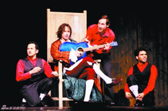盖谢尔剧院的这版《唐璜》,由以色列最当红的偶像级演员萨沙·杰米多夫扮演,这位除了戏剧之外同时也是众多电视电影作品主角的“男神”,无可匹敌的个人风采和挥洒自如的表演,令舞台上下都为之一振。当他领着仆人斯卡那尔跑下舞台,在首都剧场的观众席里穿梭来往,寻找美女时,大概不少女观众都在心里期待着他笑着点头,用刚学的中文说道:“漂亮,漂亮!”