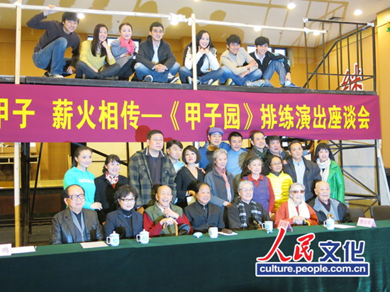 在昨天的交接建组会上,老艺术家蓝天野、朱琳、郑榕、朱旭、吕中等人都给了年轻人很大的鼓励,朱旭对年轻演员说:“要相信自己能干大事,凭什么开会都得80岁以上的人叨叨。”一席话说笑了所有人,吕中则称:“年轻人有活力,一定能创造出一个新的《甲子园》,创造出奇迹,让观众目瞪口呆。”尽管老艺术家鼓励不断,但365天几乎两天一次演话剧的濮存昕称:“让我接演这个角色,我很多次都想金蝉脱壳,老艺术家的气场太强大了,接棒天野老师的角色我老是想起《茶馆》里的台词,‘花生仁有了,牙口没有了’,老艺术家们在舞台上的功底不是我们一天两天能学会的,他们在台上不是演,就是他们自己,而我们就只能是演了,现在就想着怎么能把自己摆进去。”