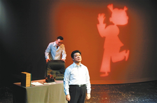 李龙吟(前排)饰演的企业家找到杨佳音饰演的心理医生求问“解药” 郭延冰 摄