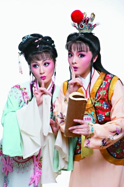 和清新、时尚的舞台呈现吻合的是,剧中担纲主演“宝黛”的也是两位越剧新秀,扮演宝玉的“90后”郭茜云由著名尹派表演艺术家赵志刚亲授,黛玉的扮演者是“85后”的袁派传人俞景岚,是方亚芬的爱徒。“宝黛”二人都是双十年华青春正好,与剧中人恰好契合,表演上也深得名师真传。郭茜云那一双眼波流转的大眼睛,左右顾盼,将少年情怀的懵懂与错失爱人的悲痛都演绎得恰到好处。而俞景岚扮相秀丽,眉眼间有一种天生的娇弱,恰好映照了原著中“娴静时如娇花照水,行动处似弱柳扶风”的意境。剧中她们将共同演绎出“共读西厢”中宝玉的娇憨、黛玉的俏丽,也将在“宝玉别灵”中唱出一句胜似一句的悲切,在观众席献上“催泪瓦斯”。