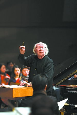 格纳迪·罗日杰斯特文斯基在指挥排练。 本报记者 方非摄