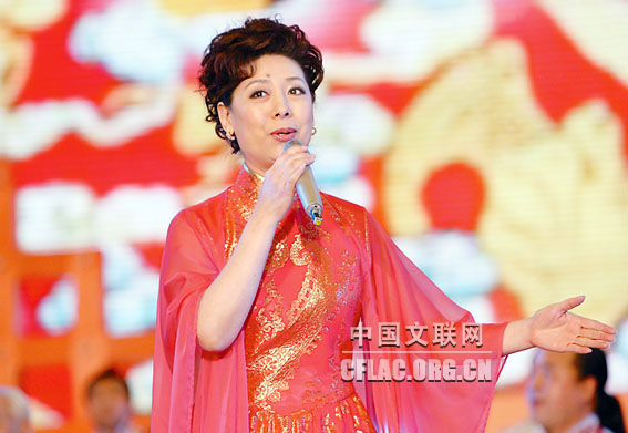 图为在“百花迎春——中国文学艺术界2008春节大联欢”上,关牧村登台献艺。