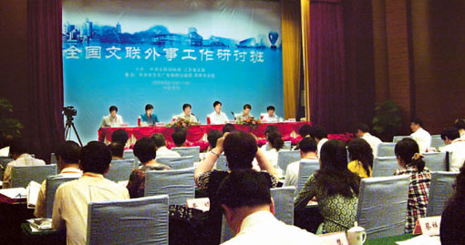 传统的、现代的,民族的、时尚的,文化,一直在用人们熟悉的形式让中国了解世界,也让世界感知中国。而无论是在新中国成立初期、改革开放后,还是步入新世纪,凭借着丰富的文艺资源和文艺界人民团体的独特功能,文联在对外文化交流中担任着重要角色。在中国文联即将迎来成立60周年之际,5月12日至14日,来自中国文联及各全国文艺家协会和各省、自治区、直辖市文联的代表,在由中国文联国际联络部、江苏省文联主办,苏州市文化广电新闻出版局、苏州市文联承办的全国文联外事工作研讨班上,为整合资源、拓宽渠道,开创文联系统对外文艺交流事业新局面而建言献策、畅所欲言。