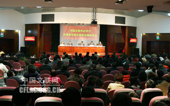 中国文联机关全体干部、各文艺家协会副处以上以及参照公务员管理的干部、各直属单位中层以上干部参加了大会。
