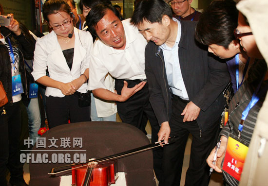 9月3日,由中国民协、鄂尔多斯市乌审旗人民政府等主办的中国新农村新牧区文化暨民间文化之乡建设经验交流现场会在乌审旗举行。图为中国民协分党组书记、驻会副主席罗杨等参观中国马头琴博物馆。中国文联网 丁薇 摄