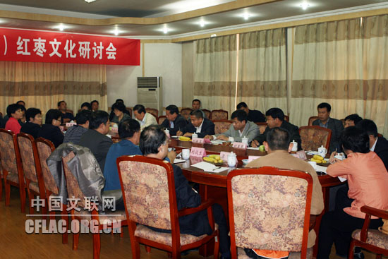 10月9日,由中国民协、河北省文联主办的“中国红枣文化之乡”命名暨“中国红枣文化研究中心”授牌仪式在河北省行唐县举行。图为当天举行的红枣文化研讨会现场。中国文联网 郭青剑 摄