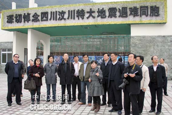 10月29日,考察团在北川地震遗址悼念5·12特大地震遇难同胞。中国文联网 张志勇 摄