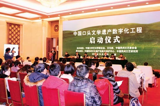 12月30日,中国文联、文化部、中国民协在北京人民大会堂正式启动中国口头文学遗产数字化工程。该工程将中国民协成立60年来组织全国民间文艺工作者采集、记录的所有民间文学文字和图片资料进行数字化存录,包括全国各地县(市、区、旗)和乡(镇、苏木、街道)的民间文艺普查记录的原始文字资料及其所附的第一手民间文化记忆与信息,总字数达8.4亿,是迄今为止我国口头文学资料最为系统的民间文学数据库。