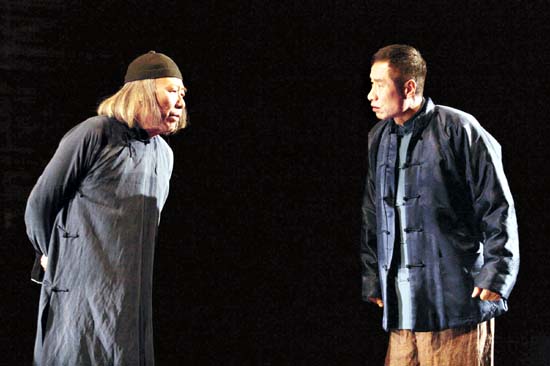 为纪念老舍先生诞辰111周年创作的话剧《老舍五则》,作为“国家大剧院2011新春演出季”的开幕作品,自1月1日起在国家大剧院连演九场。该剧由老舍先生的五则短篇小说串联而成,但每则故事并不追求同一主题,而是独立承载各自剧情内容与感情色彩,故事之间利用舞美等手法巧妙地连接起来。图为话剧《老舍五则》剧照。高 尚/摄