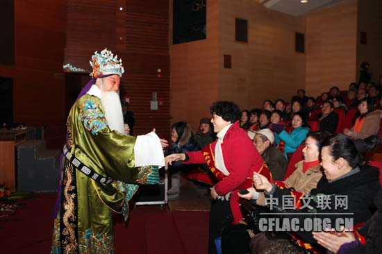 被积雪覆盖的房屋、树木,凝冻难行的路面,身着厚重棉服的行人……如果不是站在贵阳的大街上,很难想象,这场从2010年底持续至今的雪灾,究竟带给这座原本温暖的城市怎样的变化。恶劣的天气一度导致贵州省内多条高速公路中断,贵阳机场近百架航班延误,却没能阻挡中国剧协梅花奖艺术团演员们从四面八方赶来的脚步。1月18日晚,2011年中国文联、中国剧协梅花奖艺术团“送欢乐、下基层”贵州贵阳行慰问演出,同时也是梅花奖艺术团的第100场演出,在贵阳大剧院如期举行。13个剧种的22位梅花奖获得者,在来不及休息,甚至没有足够时间走台、合光的情况下,仍旧以各自毫不失色的表现,为身处凝冻灾害中的贵阳人民带来了一场充满欢乐与温暖的演出。