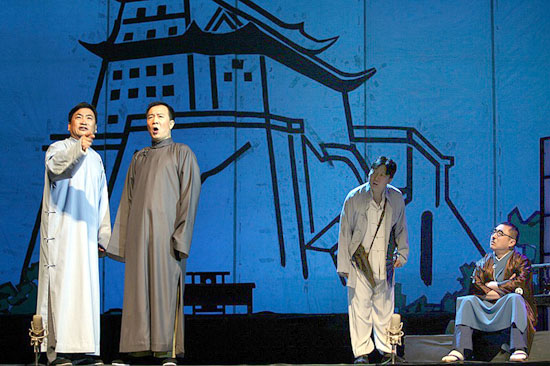 可见,尽管“相声剧”一词的界定迄今仍未确定,但综观两岸相继出现的这些以“相声剧”命名的舞台剧作品,有一个显著特征,相声是其中重要且不可或缺的表演方式。赖声川的一系列“相声剧”作品之所以影响深远,正如论者指出的:“赖声川的‘相声剧’不同于传统的相声形式,却汲取了相声中最重要的艺术元素,相声的传统元素再现于赖声川的相声剧中时,却具有了非常鲜明的现代特征。”于戏剧作品中创造性地借鉴曲艺元素,并以此拓展戏剧的表现能力,增强与大众审美习惯的沟通,同时,使传统艺术语汇适应当代文化语境的表达,无疑可以视作当下以“相声剧”冠名的一系列舞台剧的最佳追求。