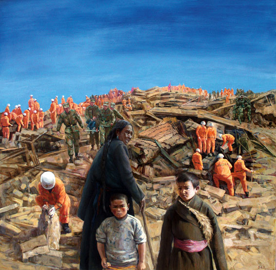 《玉树[1]我们和你在一起》(油画) 李俊杰