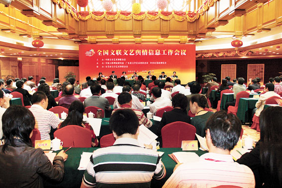 4月11日至13日,由中国文联主办,中国文联理论研究室、广东省文联、东莞市委承办,东莞市文联协办的2011年全国文联文艺舆情信息工作会议在广东东莞召开。中国文联党组成员、书记处书记夏潮出席会议并讲话。广东省委宣传部副部长顾作义,中国文联理论研究室副主任刘国强,广东省文联党组书记、副主席白洁,中宣部舆情局网络舆情处副处长吴玉荣,中宣部舆情局办公室副调研员段雪梅,东莞市委常委、市委宣传部部长王道平,中国文联理论研究室副巡视员朱丽华等出席开幕式。中国文联各团体会员单位、各直属单位、机关各部室有关人员130余人参加会议。会议由刘国强主持。会议回顾了2010年全国文联舆情信息工作的总体情况,安排了2011年的舆情信息工作,表彰了文艺舆情信息工作先进集体和个人,还进行了分组讨论、大会交流和舆情员培训。