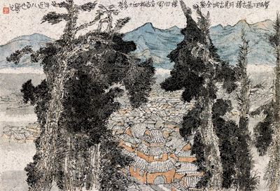 中国画传统悠久浑厚,历朝历代高手辈出,其所积淀的审美标准与技法程式已成为令人难以逾越的高峰,较之于人物画,山水画更讲究在古意、古法中寻觅新境,它的皴法、勾勒法,都是前人从无数次体验的积累中凝炼出的普通规律,不仅具有抽象美,也不乏生活基础。故而,仅以写生入画则缺乏古法所带来的文化意象,仅以程式入画则未免迂腐、平庸。真的创新便是真的“大痴”,一心痴迷传统;真的创新也便是真的猛士,由传统中跃出,在自然中找到传统,在传统的艺术世界与自然和生活之间迁想妙得。这是生活情感与文化情怀之于艺术家主体而发生的作用。其酿造的成果当醇馨满纸,新意盎然。