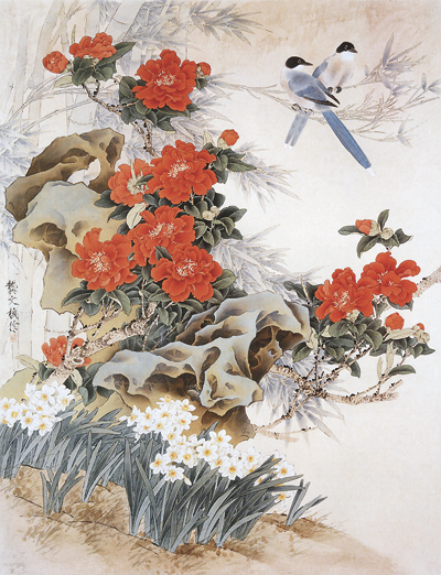 工笔重彩花鸟画历史悠久,早在唐代以前花鸟已经成为画题,这是由于中国人在宇宙自然“天人合一”、“万物和合”的观念影响下,大至山川小至草木,都最早地进入画家的视野之故。唐宋之际,工笔花鸟画大盛,留下许多经典作品,成为后人发掘、学习和继承的范本。20世纪30年代,于非闇由写意转入工笔,开发宋人诸多密钥,使工笔花鸟画开始进入柳暗花明时期,新中国成立后又经两代人的努力,如今已是队伍庞大、风格各异、百花灿烂的辉煌局面。龚文桢的花鸟艺术,既绍述于非闇、余致贞、田世光一脉,又能紧随时代,有所用心、有所创造、有所发展。大江以北,工笔花鸟画实力派之首,非龚莫属。