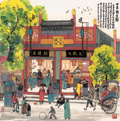 难能可贵的是,他的画不但有人有景有情,还有味,按马海方自己的话说:“我的画什么味,是豆汁儿味、麻豆腐味、炒肝味……”常言道:“好茶不怕细品。”不但北京人对他的画有一种亲切感,外地人、外国人看他的画,也不由自主地感到亲切。难怪他的画这几年在艺术品拍卖市场上有点烫手,价位一个劲儿地往上翻跟头。
