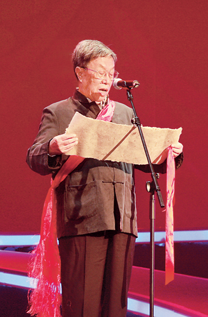 95ËêµÄÖÜΡÖÅ»º»ºËµ³öÕâÑùÒ»¾ä»°£¬²¢Ïò75ËêµÄ³Â¼ÒÕä°ä·¢ÓÅÐã´«³ÐÈ˽±¡£Í¼ÎªÁ½Î»ÀÏÈ˵ĺÏÓ°¡£