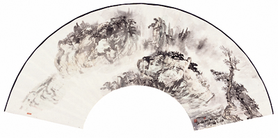 大艺术家性情里大都有冰炭共处、水火相容的特质。而将这矛盾和谐的统一,又能将其提炼升华至审美的境界,并且表现在自己的作品里,方可称得上真艺术。我初见张宝珠的山水画,只从中看到激情之火。的确是笔墨雄健、气势磅礴,但总感受不到柔情之水的细致入微,只能给人些许震撼,却无法平息人心躁动纠结的情绪。近日再见张宝珠此番山水画扇面展,我大有对此茫茫无语之慨。这批小作品中有大格局。豪迈放达里内含着精微,痛快淋漓中透露着典雅,真是笔笔深情、色色动容!