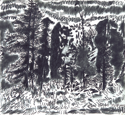 今年3月初为庆祝建党90周年画展,我们特意驾车再次前往井冈山进行实地写生。3月的井冈山阴冷潮湿雨多雾大,山上还不时地出现冰挂景观。此次写生主要是以井冈山五大哨口为主题。哨口山势险要,山路崎岖陡峭,道窄路滑,走在如此艰难的路途上,不时会联想到当年毛主席带领红军走过这里时的情形。我们一边走访参观一边写生,越来越被一种精神所感染,那就是“信念”和“理想”。中国共产党从开始之弱小逐渐地发展壮大,其间一次次的转危为安。不难想象任何一个环节的失误和退却都不会有今天的胜利。“高于天的革命理想”的必胜信念不仅鼓舞着当时的人们,如今也感染着、坚定着我们的意志。