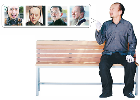 主图为电影《我和你》剧照,4个表情特写依次为《皇家刺青》中的大学士,《赵氏孤儿》中的谋士苏乾,《中国1921》中的蔡元培,《孔子春秋》中的老子