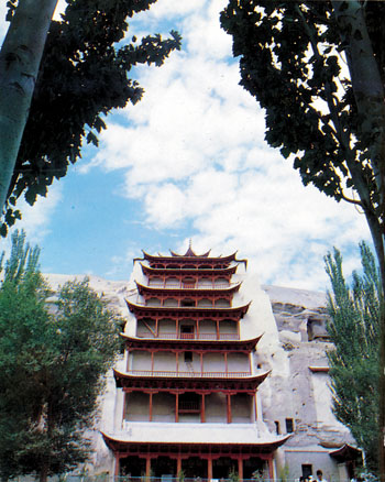 莫高窟最大的窟檐建筑第96窟(盛唐)九层楼外景