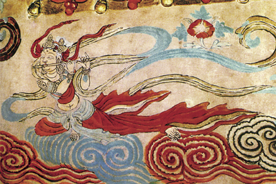 莫高窟第327窟窟顶东披飞天乐伎(西夏)