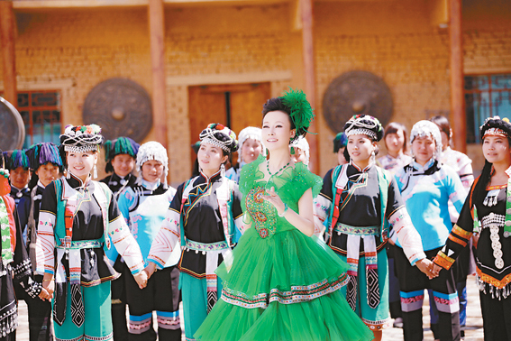 谈到导演手法,最大的特点就是真实、质朴。因为在制作MTV时,我们深入到了元阳、开远等基层,参加拍摄的演员也都是最基层的党员、群众,他们真实、质朴地演绎了红河州人民对党的深深祝福。当然,我们在作品中着力体现了红河州的许多元素,比如蜿蜒的山峦展现了红河美丽旖旎的自然风光,与象征沧桑记忆的万里长城形成鲜明的对比,尽显中华民族的悠久历史与壮丽山河。同时,秀美的村庄、亮丽的服饰,展示了多彩的民族风情和在党的领导下红河州新农村建设取得的辉煌成就。需要特别说明的是,红河州开远市是云南省确定的唯一城乡统筹发展试点,全市上下正在全面建设“中国幸福之乡”,MTV中那些如诗如画的幸福生活画卷,不是取自苏南,也不是珠三角、长三角,而是西南边陲的红河开远!