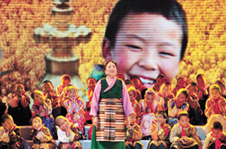 7月14日,“感动西藏人物”称号获得者、中国文联副主席才旦卓玛在演唱。