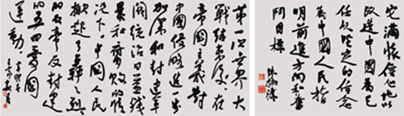 “红船颂”全国书法名家作品邀请展日前在嘉兴举办。左图为王家新作品,右图为陈振濂作品。