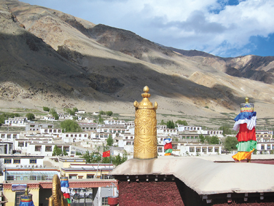 晚上9点以后,太阳还挂在喜马拉雅山上,夕阳像华盖一般,映衬得雪山温煦美艳。两人赶着牛羊向科加村走去,不由自主地仰望恢宏的雪山,欣赏河中的游鱼。还没有进村,尼玛次仁就跑到科加寺去了,他要到这座千年寺庙里祈祷平安,翁树文对寺庙的事不感兴趣,只是见过寺庙里供奉的文殊菩萨和寺庙一样古旧。他不明白一个破烂不堪的寺庙,怎么会引来无数的印度、尼泊尔、中国信徒朝拜,被三国信徒视为圣地。