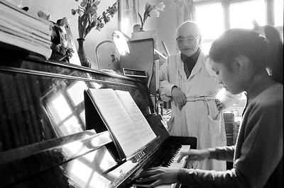 孙女为吴作人弹奏一曲,合家其乐融融。